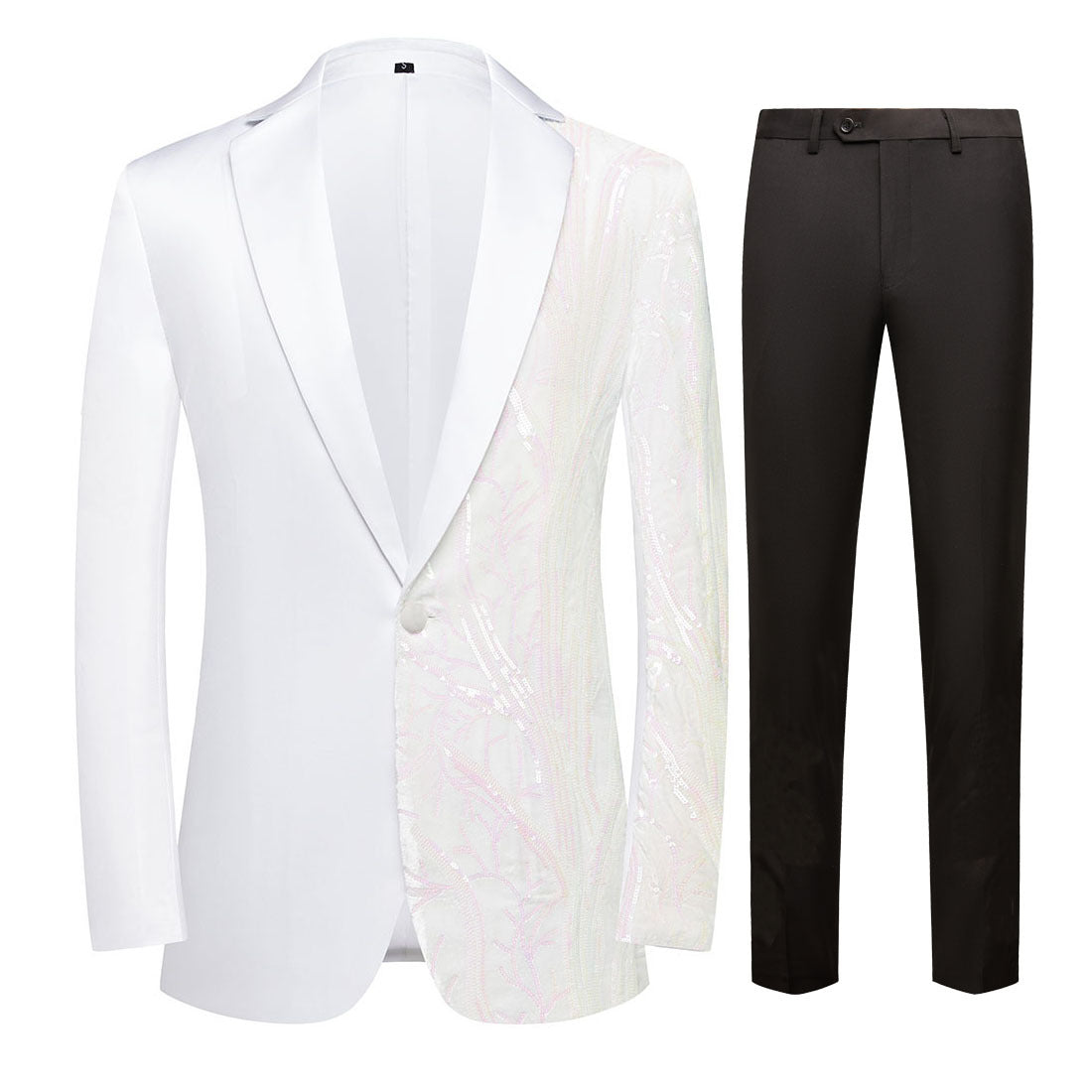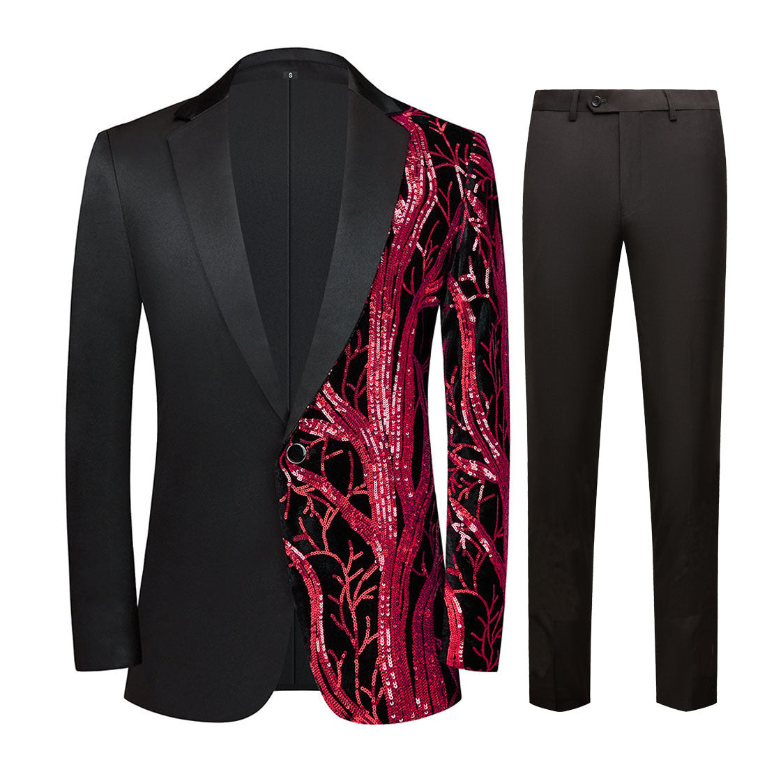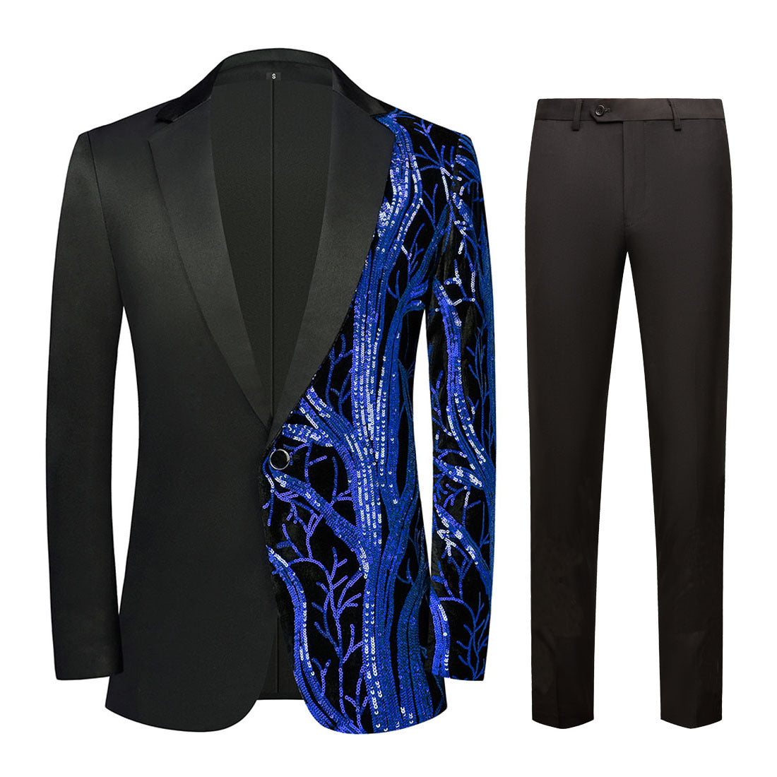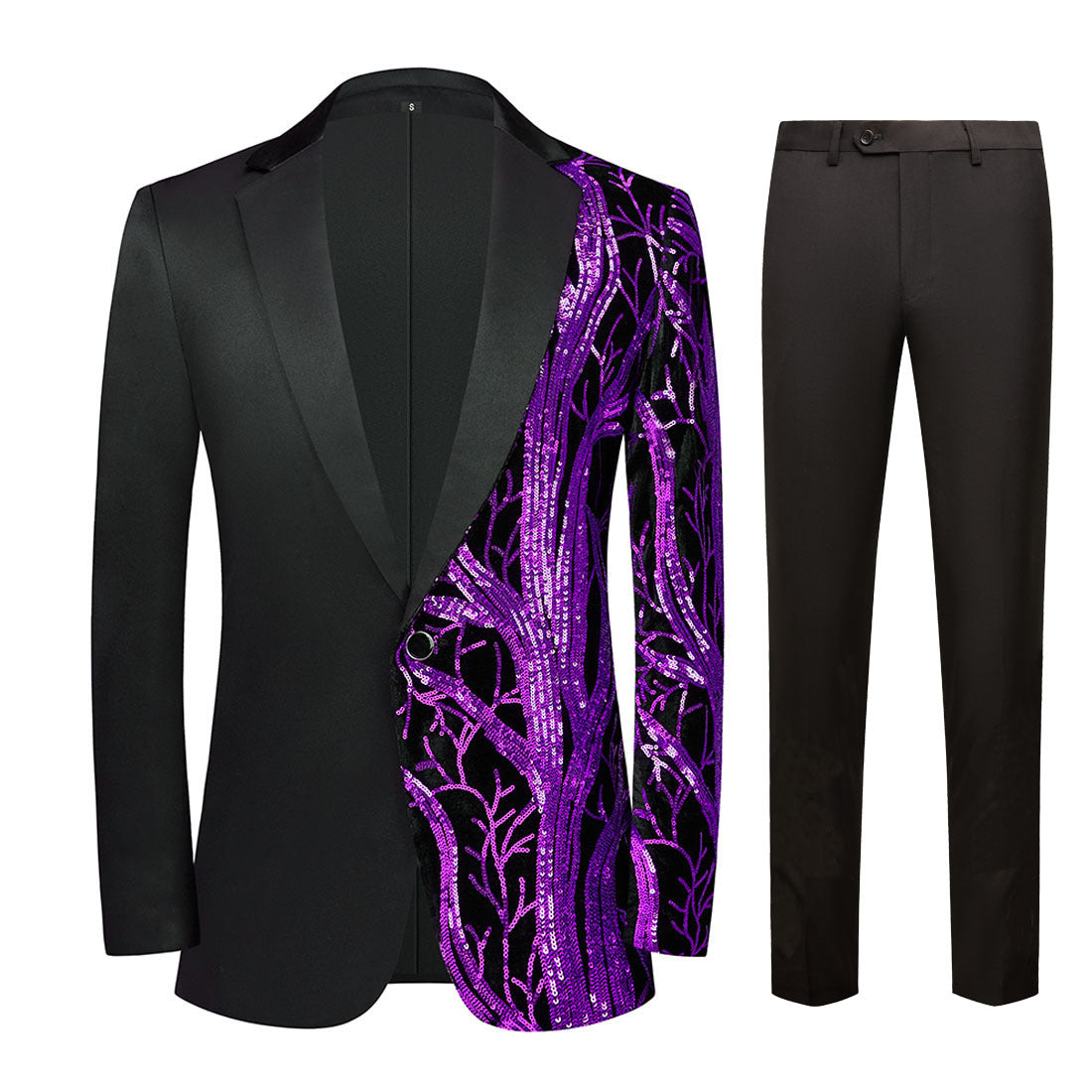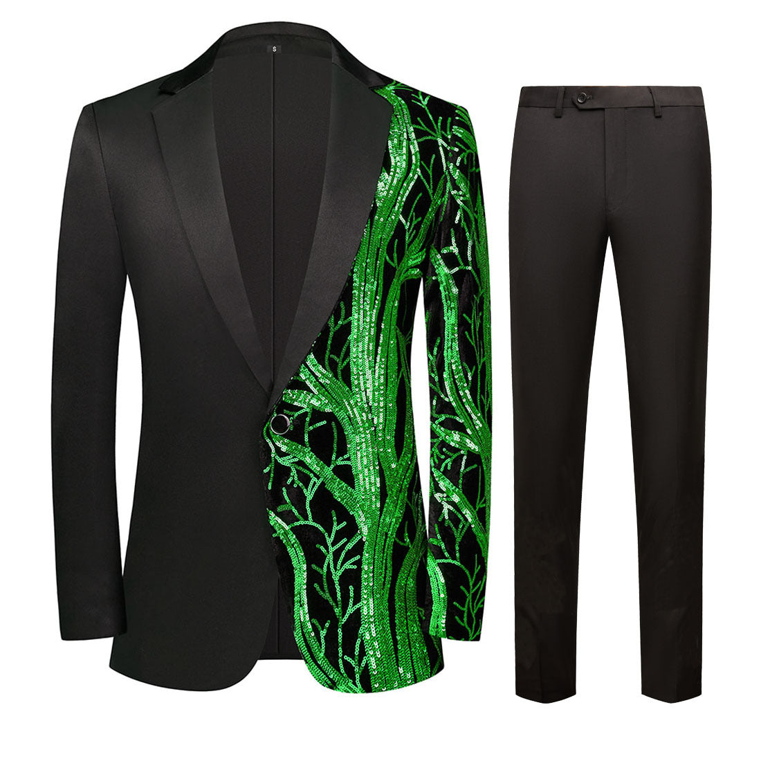 Men's 2-Pieces Branch Embroidered Sequin Jacket and Pants